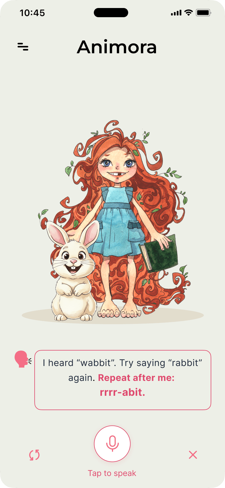 Meet Animora, the world's first AI speech therapist. Animora detects and corrects speech errors with human-level precision, helping children develop clearer, more confident speech at home.